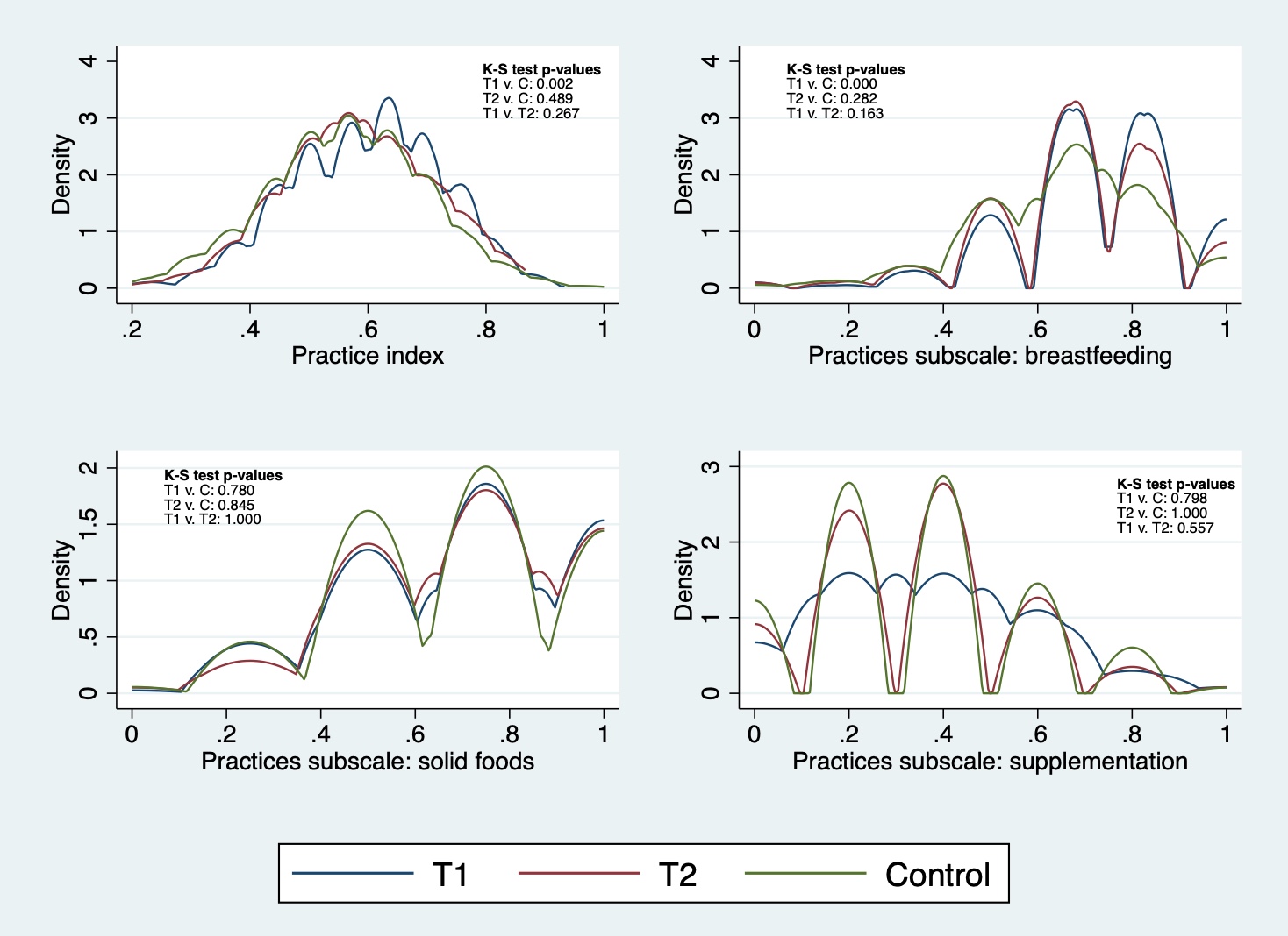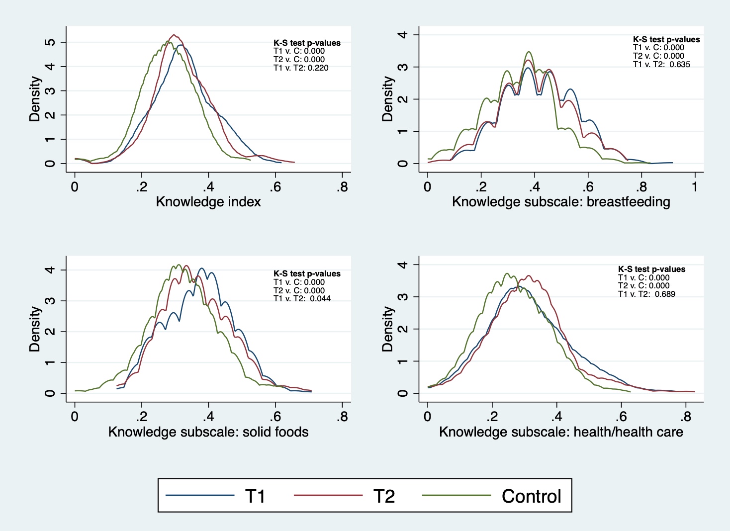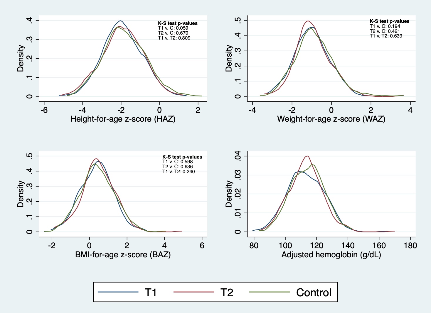 Surveys were conducted at baseline (September – November 2018) and endline (August – October 2021). Program implementation started in March 2019, and the endline survey was collected when all children in the sample had completed the supplementation period at 24 months of age |